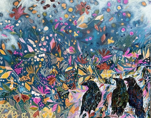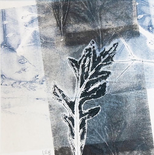 In another Time III, botanical monoprint, by Linda Ricklefs Baudry. She is the Artist of the Month at the Heritage Post in February.