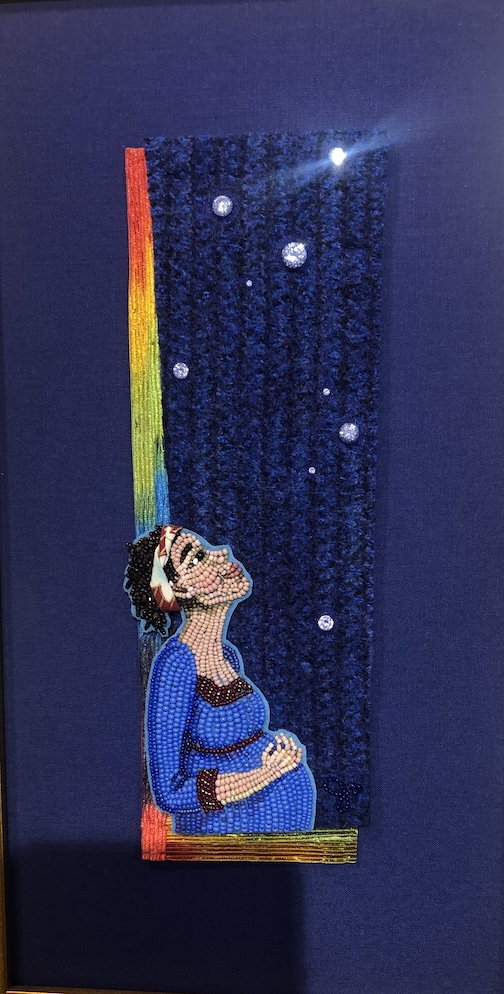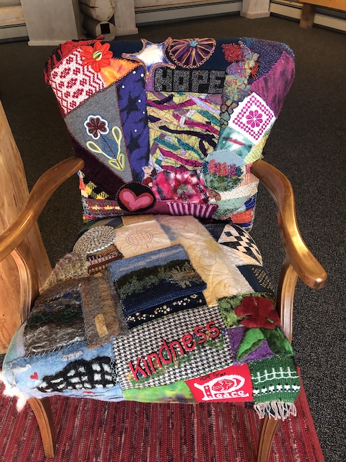 Chair of Hope, a collage of works by Guild members, invites viewers to sit and write a note in these difficult times.