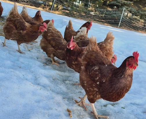 The girls are enjoying fresh air and a chance to fluff up their feathers. Photo courtesy of Locally Laid Egg Company.