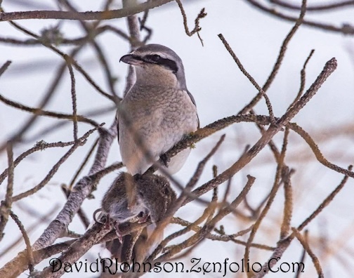 Northern Shrike with its dinner by David Johnson.