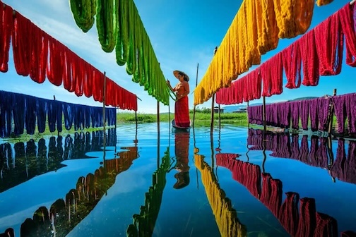 A woman at work by Inle Lake, while colorful fabrics dry, by Erdem Kilic. To see more of his photos, click here.