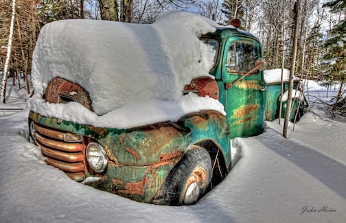 Heartland No 92, Snowbound, old Ford pickup, Madeline Island, Wis., by John Heino.